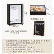 【立体展示で魅せる】奥行き約3cmの中空構造で立体感を引き立てるボックスフレーム。お好みの写真やドライフラワー、押し花、立体アート、フィギュアなどを入れて飾る額として最適です。ホコリを防ぎながら作品を美しく展示できる立体フレーム。6切(203×254mm)サイズ対応で、インテリアディスプレイやメモリアルケースとしても活躍します。