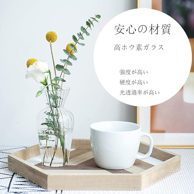 北欧風デザインのガラスベース:透明感のあるガラスとシンプルなフォルムで、置くだけで北欧インテリアに馴染みます。リビングや玄関、寝室など幅広い空間に調和します。
