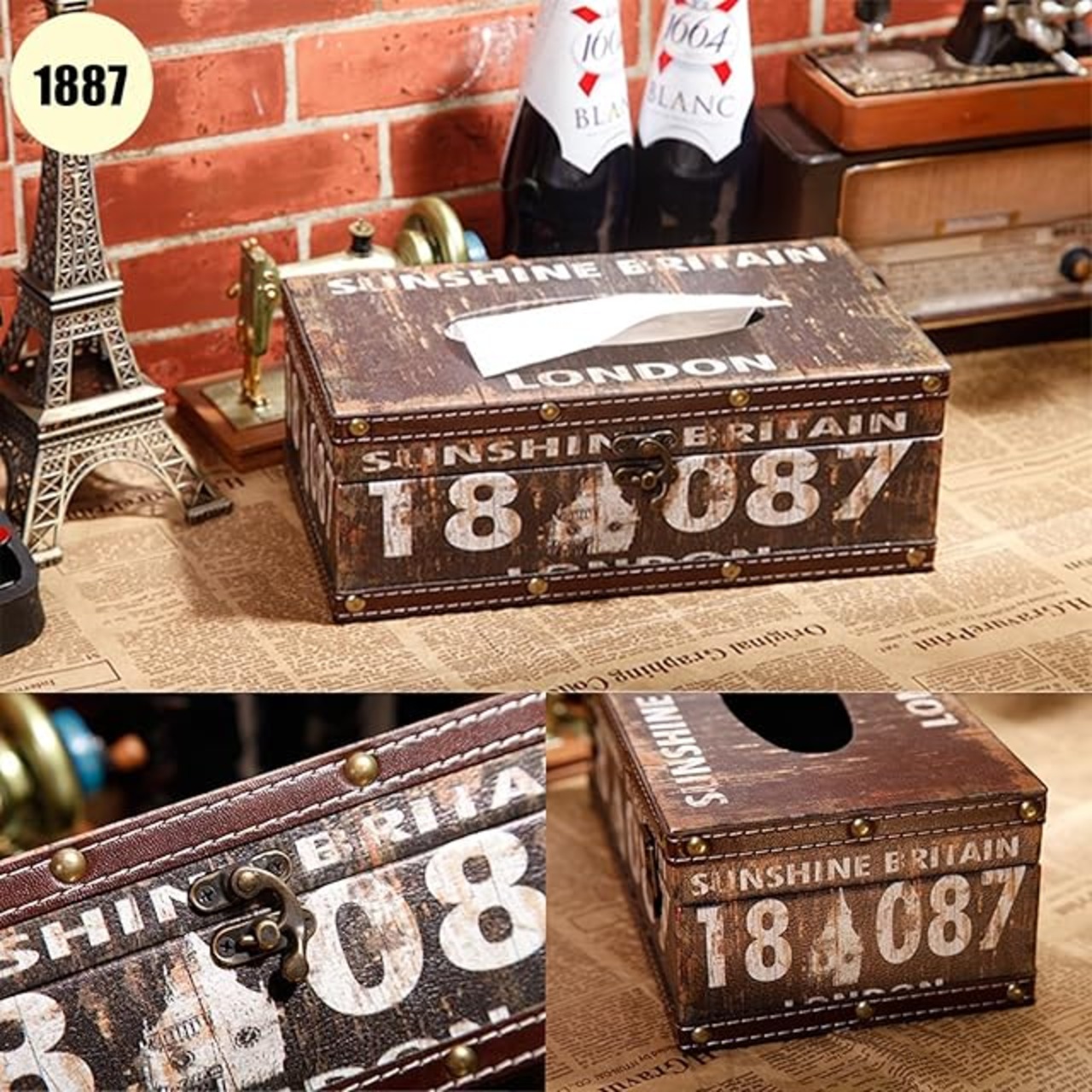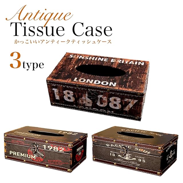商品名:[Queen-b] ティッシュ ボックス ケース アンティーク おしゃれ かっこいい インテリア レトロ ヴィンテージ 木製 ギフト プレゼント (1895)