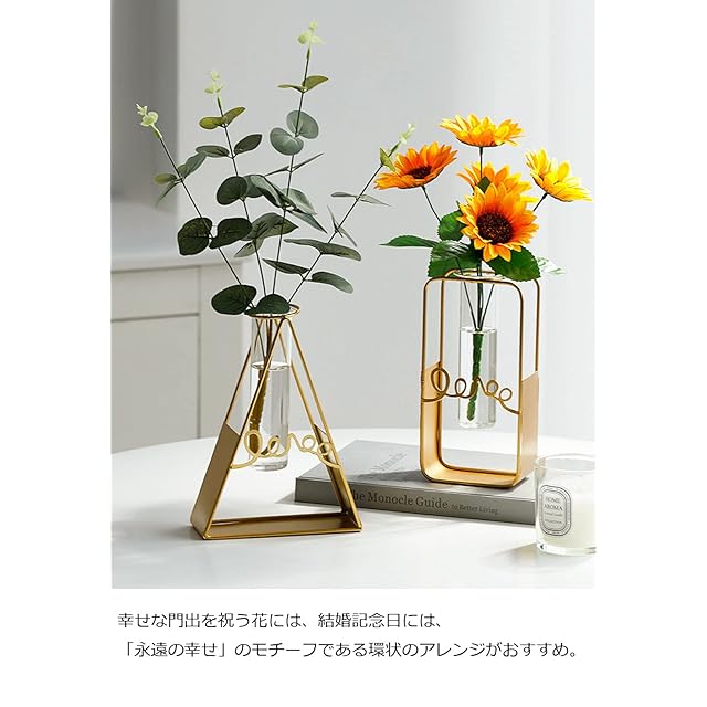 「花瓶」異素材の組み合わせの新しいフラワーベース。北欧風のシンプルデザインですので、部屋のどこに置いてもすんなりと馴染みます。菱形のメッキ仕上げの鉄フレーム×ガラスの異素材の組み合わせがおしゃれ。ガラスの容器と鉄のフレームを分離することができ、ガラスの容器を取り出すと、植物に水を換えることが簡単です。生け花やドライフラワーなどを飾ればお部屋が華やかになります。<br/>「一輪挿しに最適」生花、造花などに適用で、リビング、お部屋、玄関を飾る素敵な逸品です。一輪挿しに最適ですが、目安として1?3輪の生け花にご使用いただけます。<br/>「インテリアにも馴染みやすい」どんなインテリアにも馴染みやすい花器です。オフィスのカウンターやリビング、ダイニング、お店、洗面台、ホテルを問わず、造花、生花を花瓶で引き立てれば華やかに演出します。<br/>「特?なプレゼント」多種多様なお祝い、記念品として良いチョイスです。結婚祝い、新築祝い、誕生日の時にご家族、お友達、大切な方への贈り物にも喜ばれる逸品です。<br/>「花のある暮らし」花を生けても、花瓶だけでもおしゃれです。小枝など、外で見つけたステキなアイテムをまわりに足すと、季節を感じさせるアレンジがつくれます。クリアガラス製の花瓶やボウルを使ってコントラストを際立たせ、いくつか組み合わせて光がきらめくテーブルを演出しましょう。<br/>「シンプルなデザイン」ウエストのデザインはシンプルにエレガントで、花の美しさを引きだしてくれます。<br/>インテリアにも馴染みやすい<br/>どんなインテリアにも馴染みやすい花器です。オフィスのカウンターやリビング、ダイニング、お店、洗面台、ホテルを問わず、造花、生花を花瓶で引き立てれば華やかに演出します。