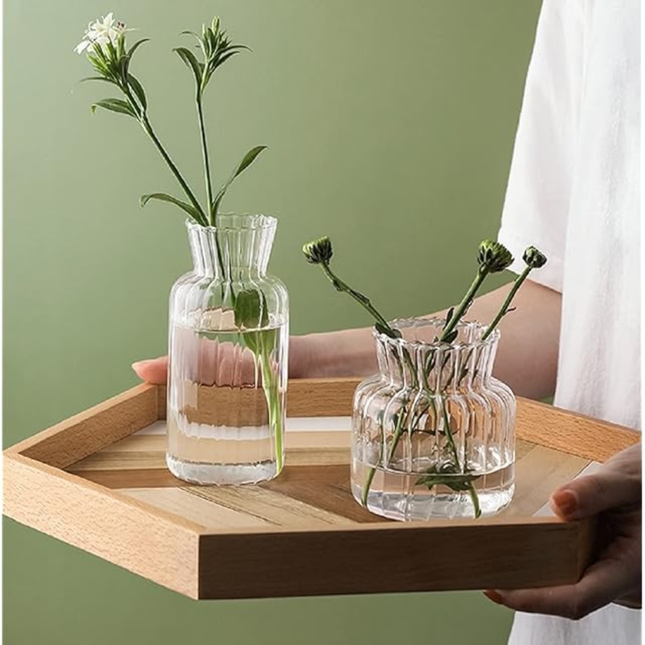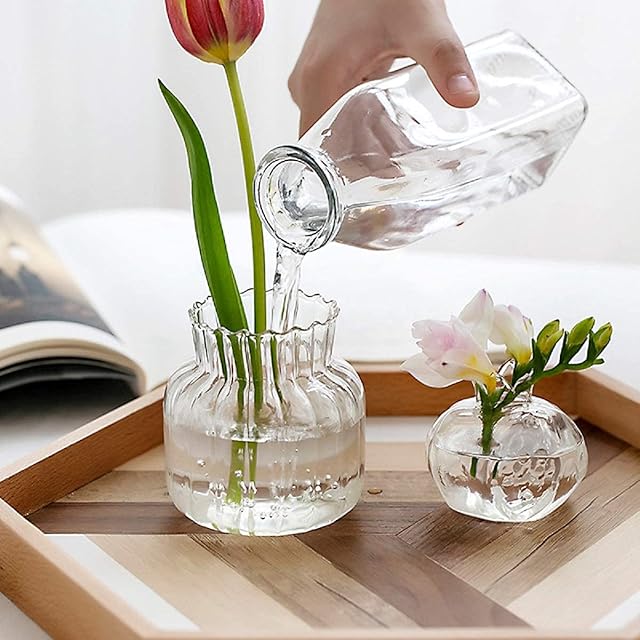 ガラスの花瓶 ミニ花器 一輪挿し 透明 - フラワーベース花器 ガラスベース ガラスボトル + 2つセット 水栽培 おしゃれ シンプル 生け花 造花アレンジ インテリア インテリア雑貨 飾り瓶 北欧 レトロ