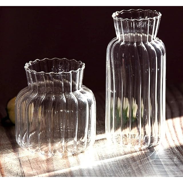商品名:ガラスの花瓶 ミニ花器 一輪挿し 透明 - フラワーベース花器 ガラスベース ガラスボトル + 2つセット 水栽培 おしゃれ シンプル 生け花 造花アレンジ インテリア インテリア雑貨 飾り瓶 北欧 レトロ