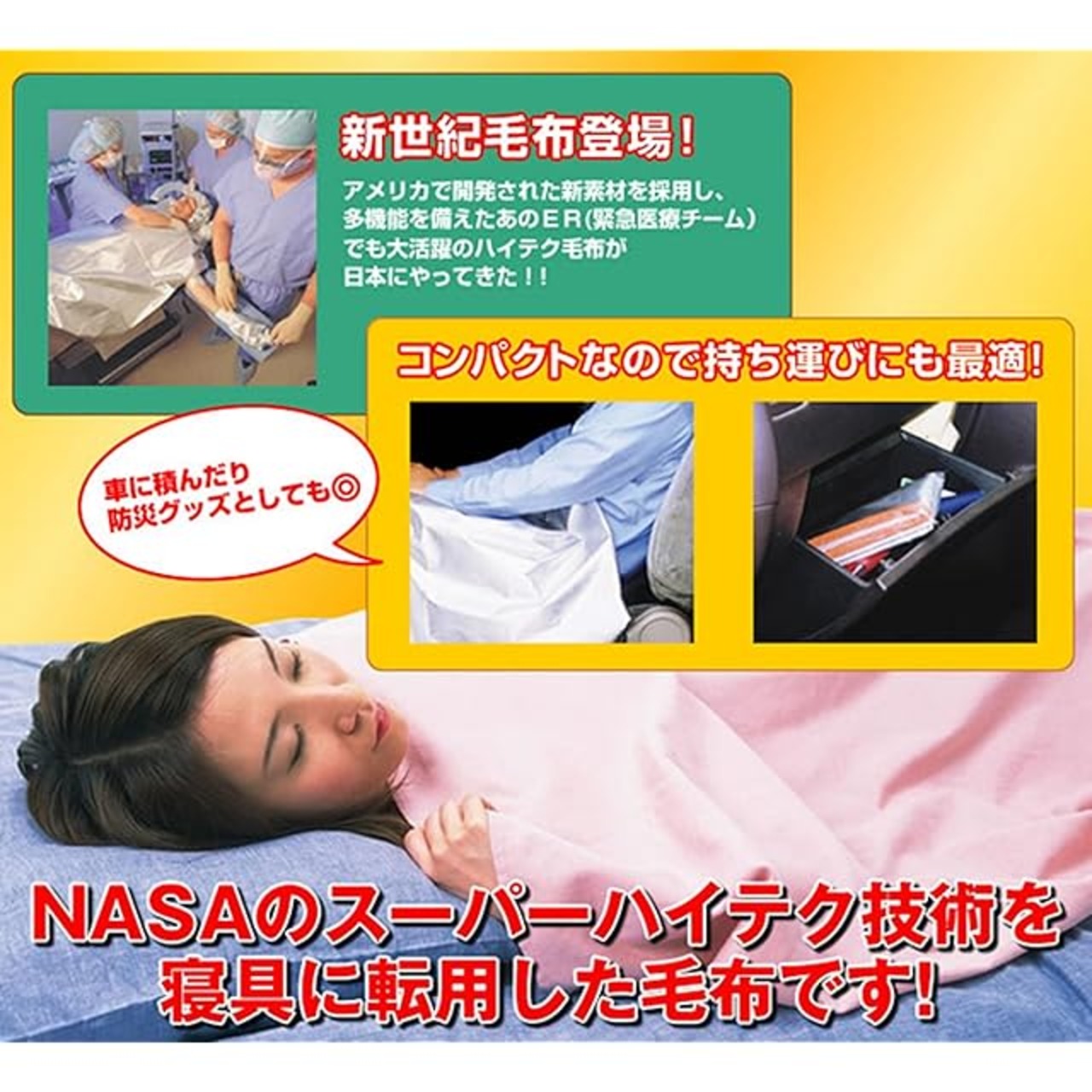 アルミ蒸着の技術は、宇宙開発のために生まれた優れた技術。NASAシート。電気を使わずエコでポカポカ。スペース あったか シート。 緊急非常時や災害時、スポーツ観戦 などの ブランケットとして。キャンプ等テント内で寝袋インナーやテントシートの代わりとして。