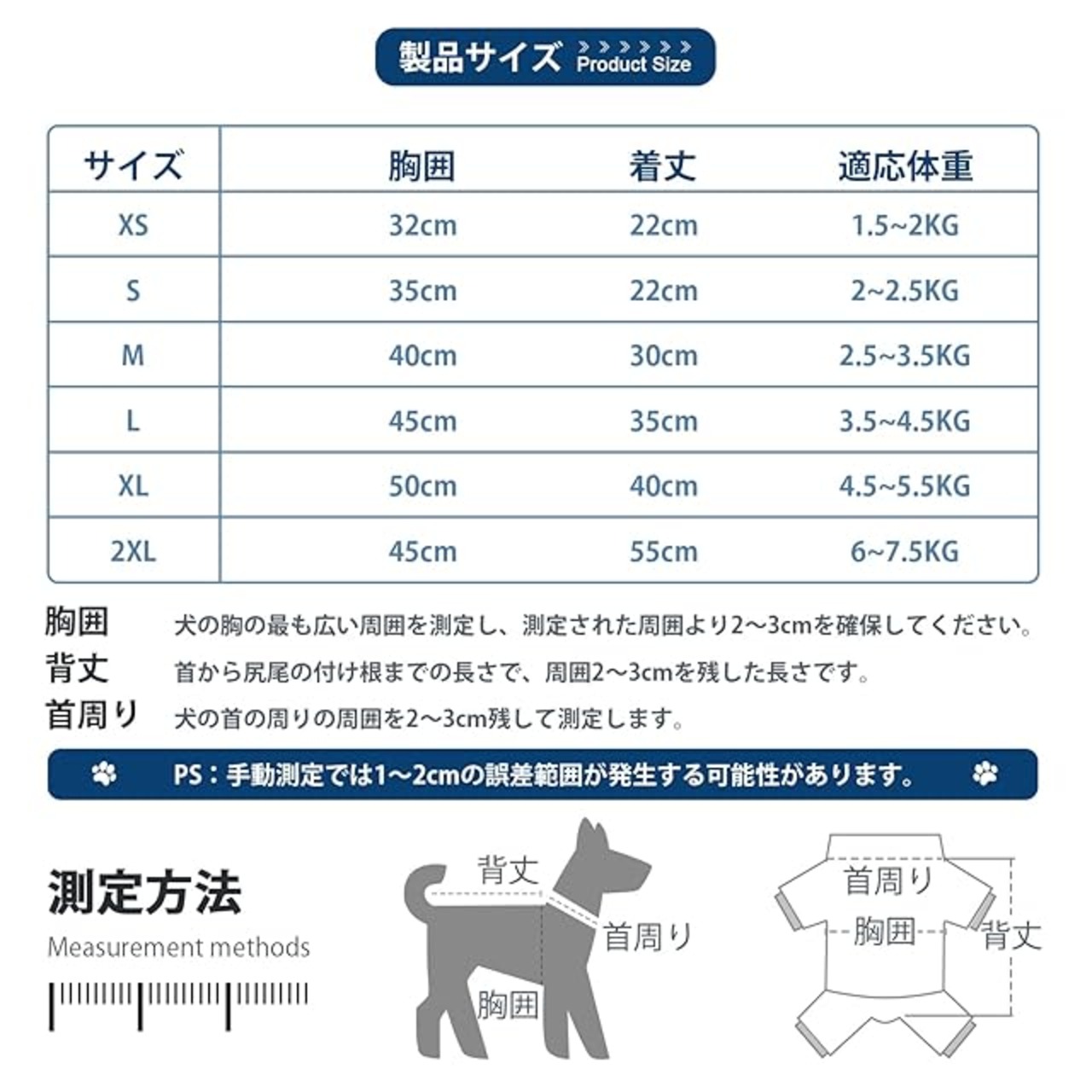 6つのサイズをご用意しています。サイズの詳細を表示します。サイズXXL 着丈:約45cm、バスト:約55cm、参考体重:6-7.5KG。サイズデータは現品を採寸し、直線化して更新しております。 2~3cmの誤差がございます。サイズが心配な場合は、周囲より1cm〜2cm大きいサイズをお選びください。