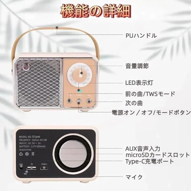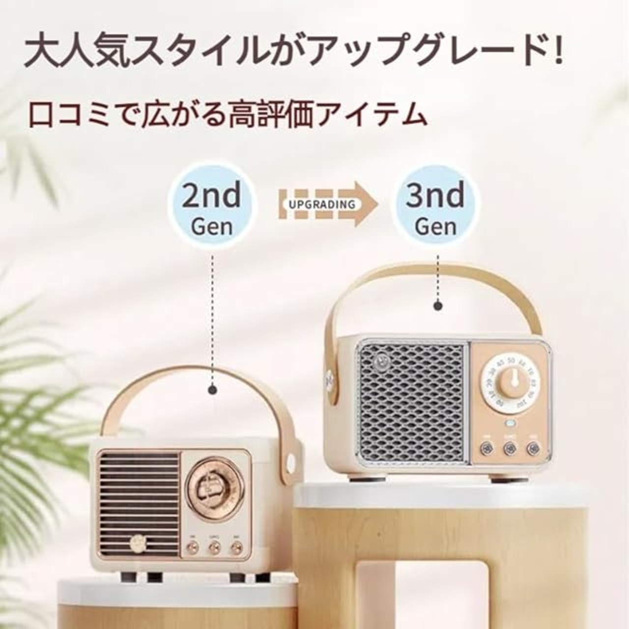 可愛いレトロデザインのBluetoothスピーカーは、コンパクトながら高音質なサウンドを楽しめます。つまみ型の無段階ボリューム調節で、細かい音量コントロールが可能。持ち運びに便利なポータブル設計で、インテリアとしてもおしゃれに映えます。女子力アップ間違いなしのアイテムで、プレゼントにも最適です。手のひらサイズでおうちカフェやお部屋の癒し空間づくりにぴったり!