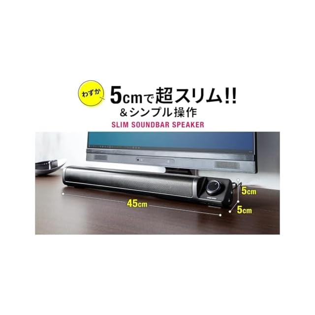 スリムデザインの PCスピーカー ( サウンドバー )です。高さわずか約5cmのため パソコン や モニター 、 テレビ などの下に省スペースに設置することができます。