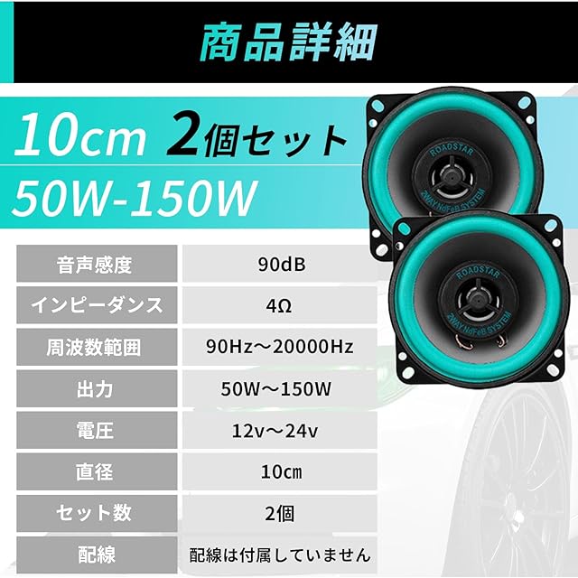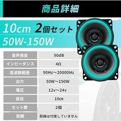 【商品詳細】内容:車用スピーカー2個 音声感度:90dB、インピーダンス:4Ω、周波数範囲 (Hz):90Hz-20000Hz、出力:50W-150W、電圧:12v-24v ※本製品は現在、旧パッケージ(50~100W表記)と新パッケージ(50~150W表記)の商品が混在しておりますが、いずれの商品もメーカー確認済みで、実際には50~150Wまで安全にご使用いただけます。 パッケージ表記に関わらず、性能・品質に差はございませんのでご安心くださいませ。