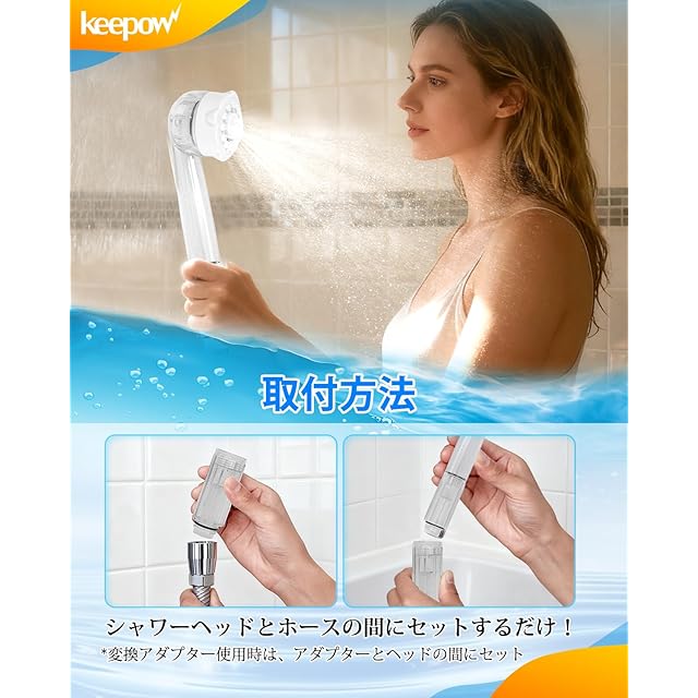 高効率塩素除去:KEEPOWのミラブルに対応カートリッジは、塩素を約80%効果的に除去。水道水に含まれる残留塩素を取り除き、敏感肌の方でも安心して使えるシャワータイムを提供します。これにより肌の乾燥や刺激を軽減します。