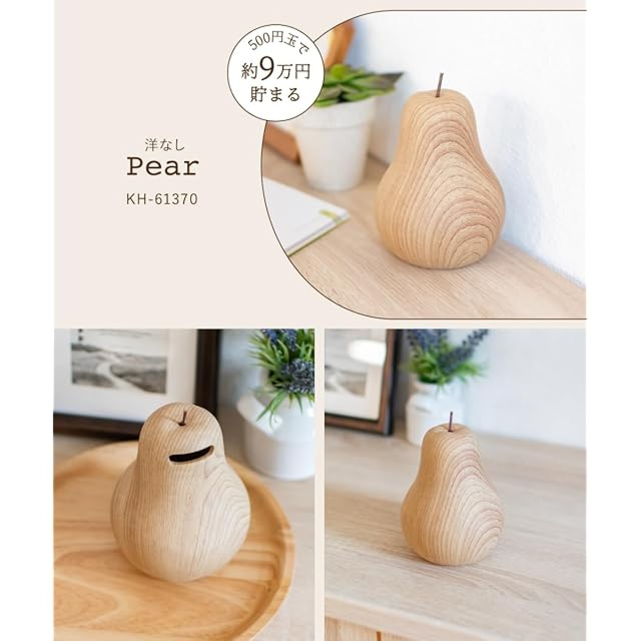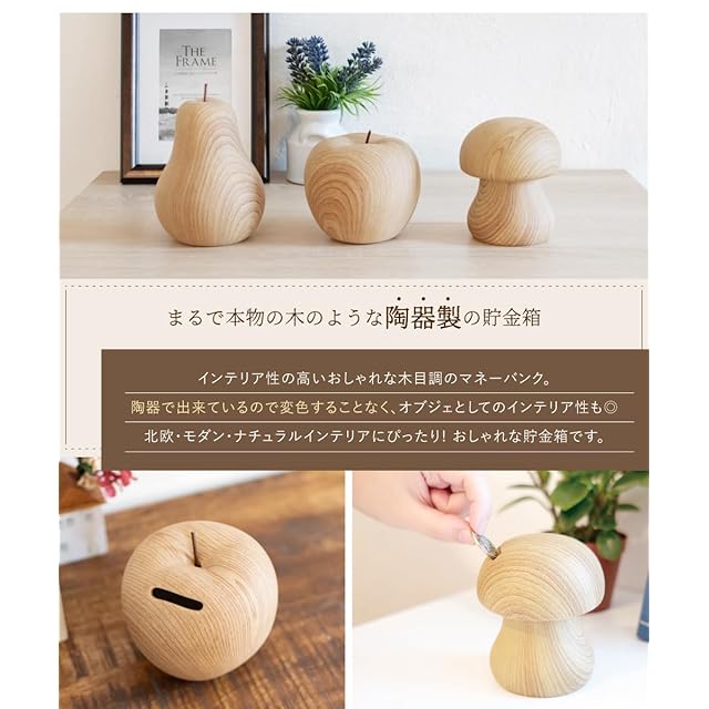 商品名:【陶器×木目の上質インテリア】貯金箱 マネーバンク 木目調 陶器 ペーパーウエイト オブジェ インテリア 北欧 モダン ナチュラル MoneyBank Pear 洋ナシ