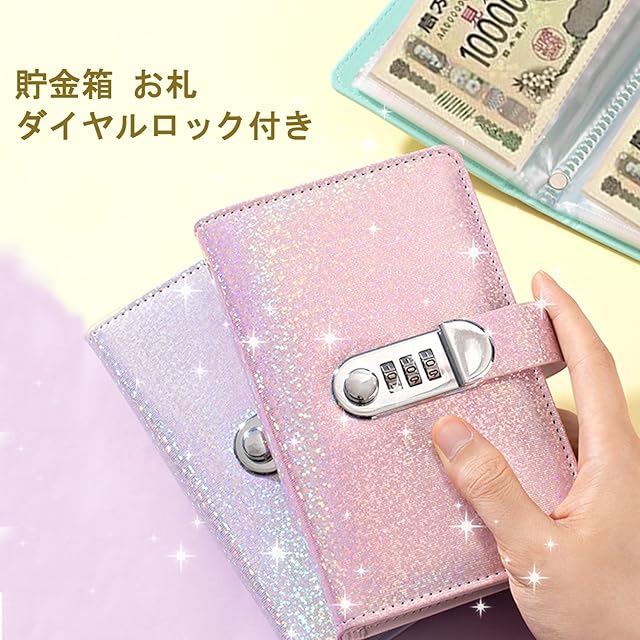 貯金箱, ダイヤルロックでお金の仕分け, 封筒貯金 箱, 100枚のお札が入る貯金ファイル, 貯 金記録, 貯金チャレンジ, 子供用, おしゃれ (紫)