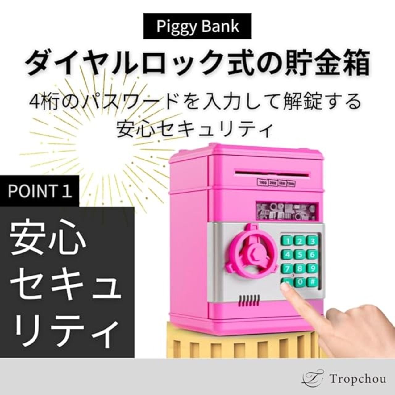 【お子様の貯金にもピッタリ】 楽しみながら貯金ができセキュリティも安心なので、お子さま用の貯金箱にぴったり。お小遣いの管理や、金銭教育、節約の意識付けにも便利です。誕生日やクリスマスなどのプレゼントにもおススメです。大人も子供も楽しくお金を貯めることができる貯金箱です。
