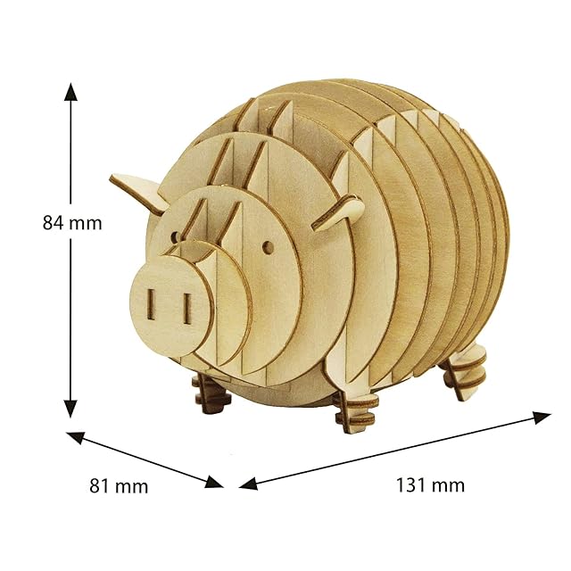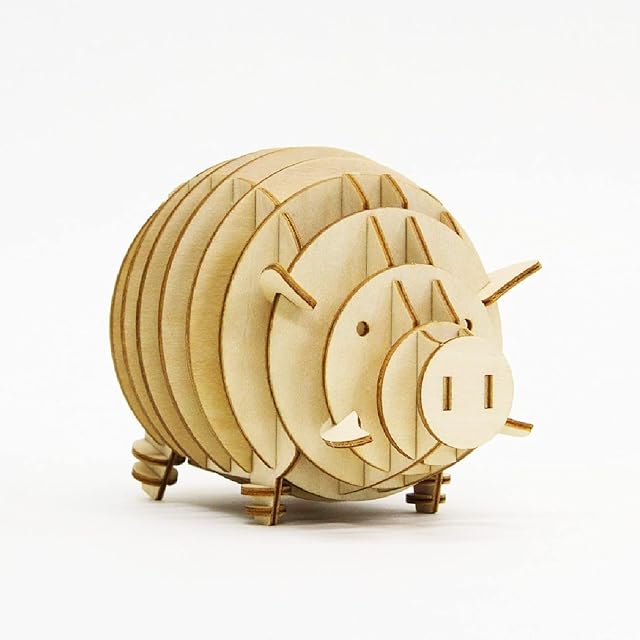 ki-gu-mi ブタの 貯金箱 - 小学生 から 大人 まで 楽しめる 木製 3D 立体パズル DIY 工作キット - 男の子 女の子 の 知育玩具 - 立体アート として 大人の プレゼント にも最適な ウッドパズル