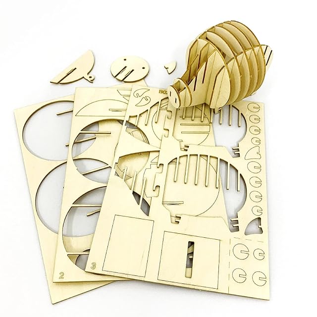 商品名:ki-gu-mi ブタの 貯金箱 - 小学生 から 大人 まで 楽しめる 木製 3D 立体パズル DIY 工作キット - 男の子 女の子 の 知育玩具 - 立体アート として 大人の プレゼント にも最適な ウッドパズル