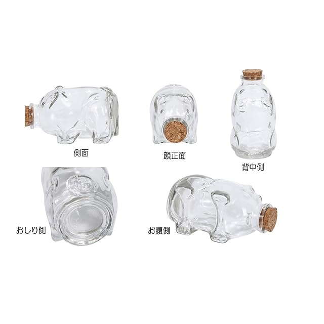 商品名:ぶた ガラス瓶 貯金箱 2個 セット 収納 コルク瓶 保存 小瓶 ガラス グッズ インテリア 雑貨