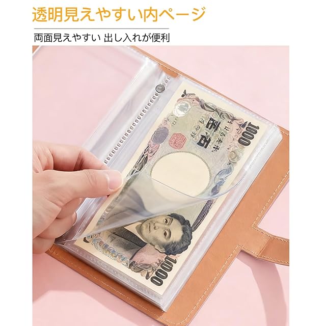 【大容量収納】コンパクトサイズながら、透明内袋50ページで最大200枚の紙幣を収納可能。小銭から記念紙幣まで、様々な種類のお金を整理整頓できます。