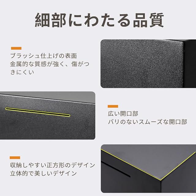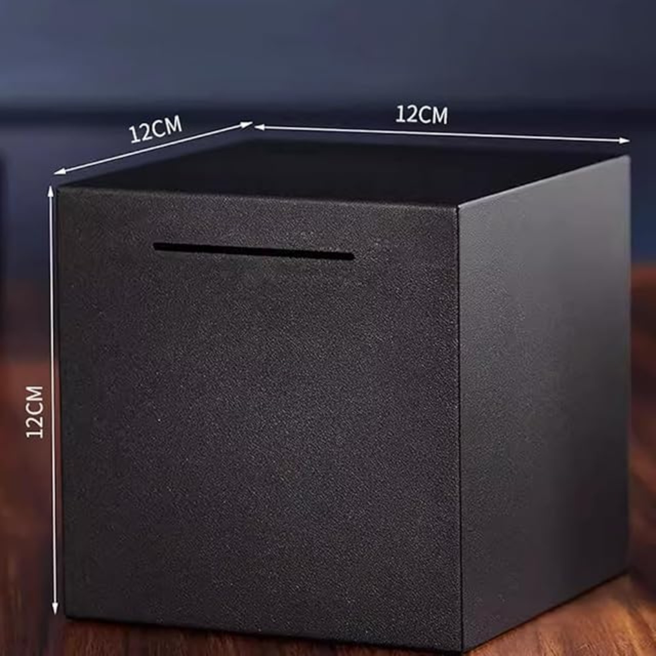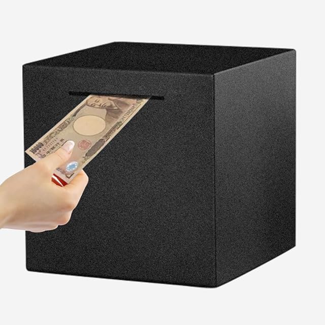 [wildsoal】フロストブラック大型ステンレス製デポジットボックス スクエア 入金専用 貯金箱 ステンレス 預金専用と引き出し専用 落としても割れない 小銭 新札