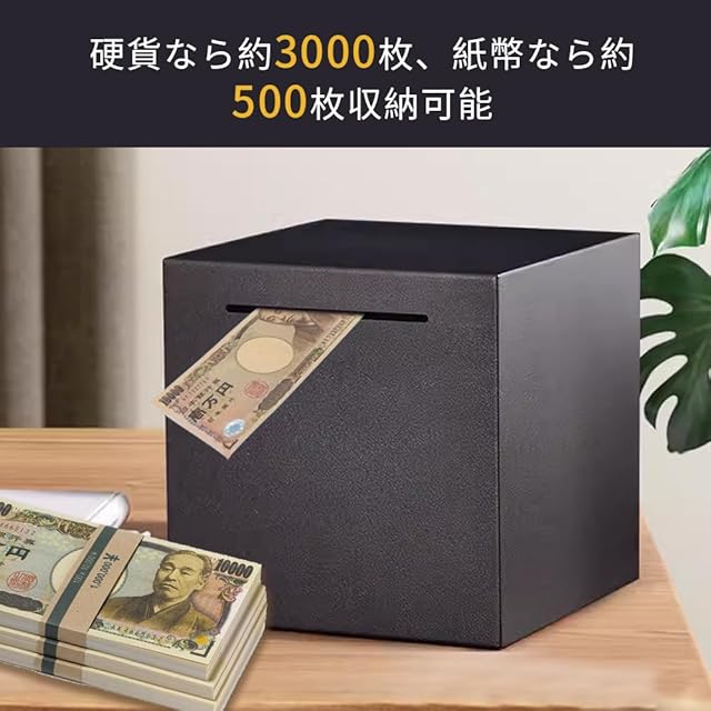 3、[大容量、紙幣を入れるのに折りたたむ必要がない]本製品は約3000枚の硬貨と500枚の紙幣を入れることができます。