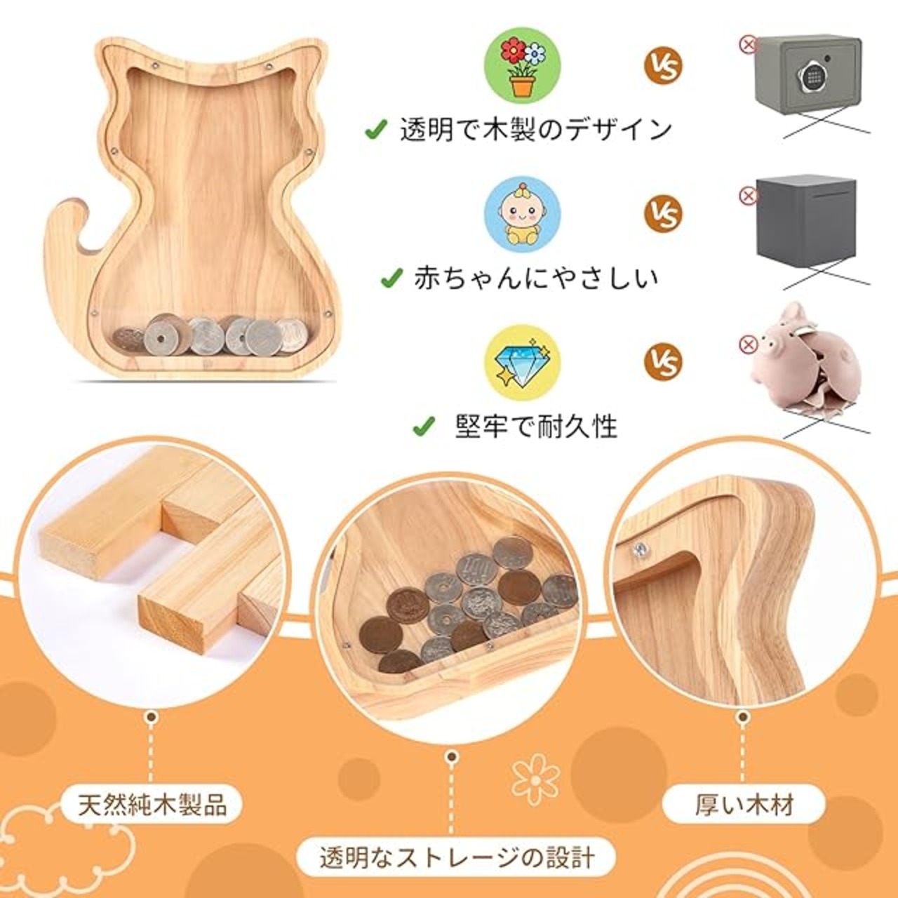 ✅【高品質素材】当社の貯金箱は子供に優しくて厚手の無垢材で作りされており、安全で滑らかなエッジが特徴です。子供が何度も落としても壊れにくく、損傷しません。無垢材を採用して無公害、無ホルムアルデヒド、無臭気で、お子様へのプレゼントとしても安心してお使いいただけます。誕生日や入学祝いなどのプレゼントにも最適。実用的でありながら、遊び心を感じさせるアイテムは、贈り物としても喜ばれます。