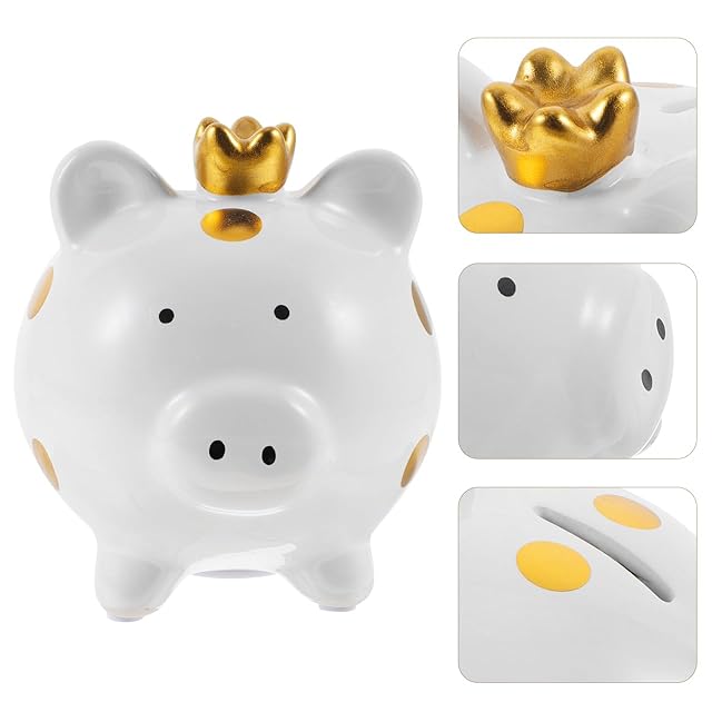 LEDMOMO 陶器製 豚の貯金箱 500円玉貯金対応 豚 冠 かわいい置物 14×13×11cm 取り出し可能 豚ちゃん 子供 大人用 プレゼントに最適 三五七 誕生日 新年 動物