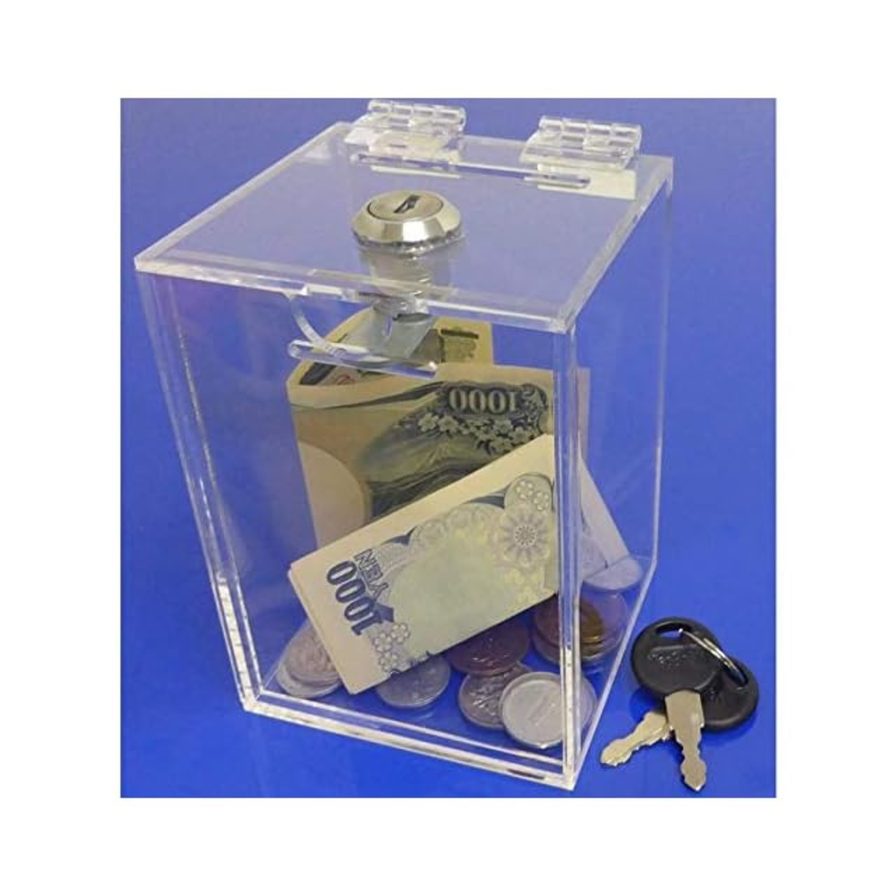 Aoakua 募金箱 貯金箱 チャリティーボックス 鍵付き アクリル W90mm クリア
