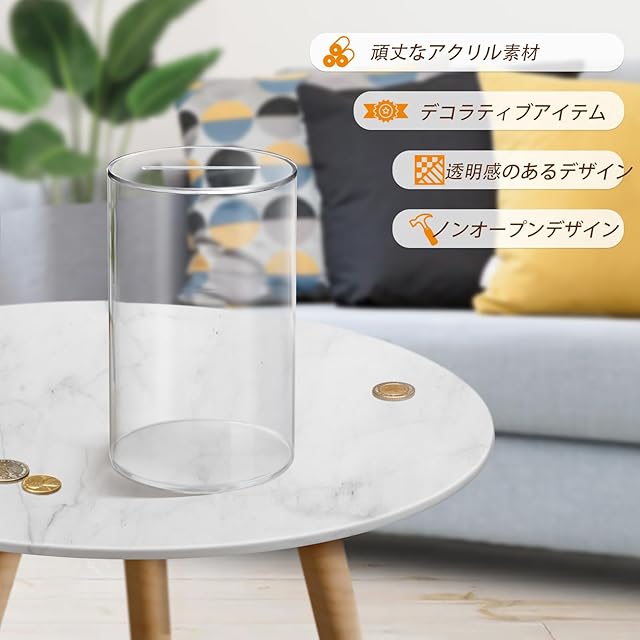 クリア貯金箱:アクリル製のクリア貯金箱は、毎秒お金が見えるので、貯める楽しさを十分に味わうことができます。 マネーボックスのデザインは、部屋のインテリアのどんな内装にもマッチするシンプルでスタイリッシュなものです