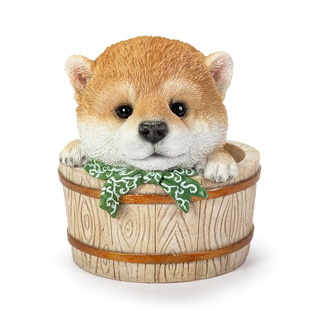 ウービア 豆しばの桶貯金箱 10.5×9×10㎝ 人形 フィギュア 置き物 アニマル 動物 ガーデン 装飾 犬 イヌ H23074