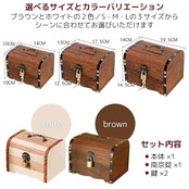 【様々なシーンで活躍】貯金箱としてはもちろん、誕生日、記念日、クリスマス…特別な日をもっと特別なものにするサプライズにも活躍。お子様はもちろん、大人もワクワクする宝箱を開ける瞬間は、忘れられない思い出になるはず。子供会やパーティー、謎解きゲームの演出にもおすすめです。ブラウンとホワイトの2色、S・M・Lの3サイズからお選びいただけるので、様々なシーンに合わせて活用できます。