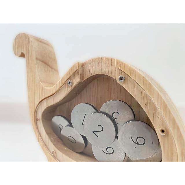 魚や恐竜、ウサギなど、子どもが思わず笑顔になる楽しいシルエットで作られたユニークな貯金箱です。天然木のあたたかみある質感と、透明なアクリル板を組み合わせたデザインで、中に入れたコインが見える仕様になっています。お金が少しずつ増えていく様子が一目でわかるので、貯金そのものがゲームのように楽しめます。 子ども部屋に置けば、インテリアとしても大活躍。動物や恐竜の形は可愛らしくも存在感があり、インテリアのワンポイントとしておしゃれに映えます。また、透明部分から見えるコインのきらめきが、遊び心をプラスしてくれるのも魅力です。 「どうやったらもっといっぱい貯まるかな?」と考えることで、お子さまの学びや自立心を育むきっかけにもなります。親子で一緒に楽しめる貯金箱だから、自然とお金を大切にする習慣が身につきます。 毎日眺めたくなるようなデザインと、使うたびに楽しくなる仕掛け。子どもも大人も夢中になれる、特別な“見える貯金箱”です。