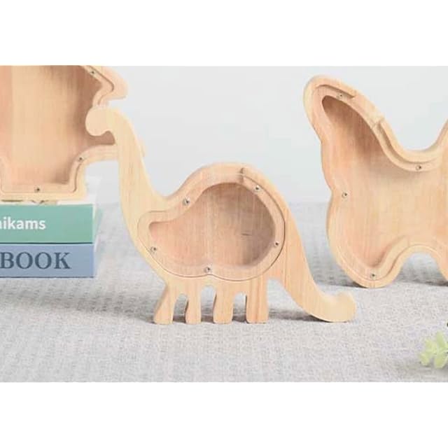 アニマル(ウサギ、恐竜、魚など)型の木製貯金箱