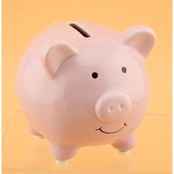 かわいい豚さんの貯金箱です。中身の硬貨は下(豚さんのおなかの部分)から取り出すことができます。