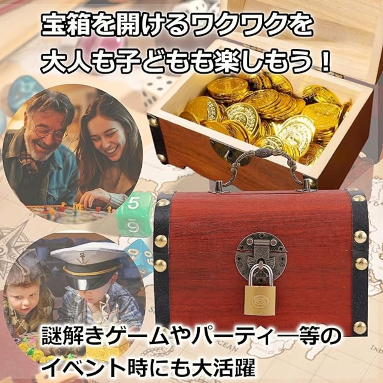 贈り物やイベント用にもおすすめ 宝箱を開けるときのワクワク感は、大人も子どもも楽しめます。お子様への誕生日プレゼントや、パーティーや謎解きゲームの小道具としても大活躍。特別なシーンを盛り上げるユニークなアイテムとして人気です。 インテリアとしても映えるデザイン