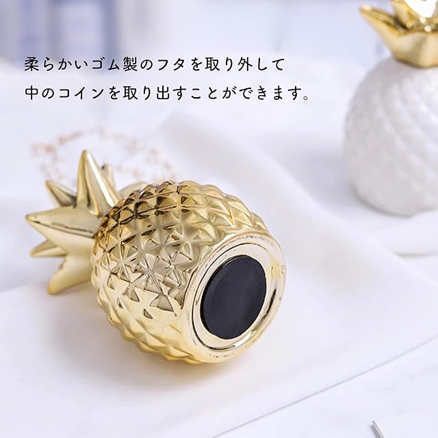 [Queen-b] パイナップル 貯金箱 かわいい 北欧 セラミック 雑貨 インテリア 置物 室内 デスク 卓上 装飾 オブジェ 果物 フルーツ ギフト 贈り物 プレゼント (ホワイト)