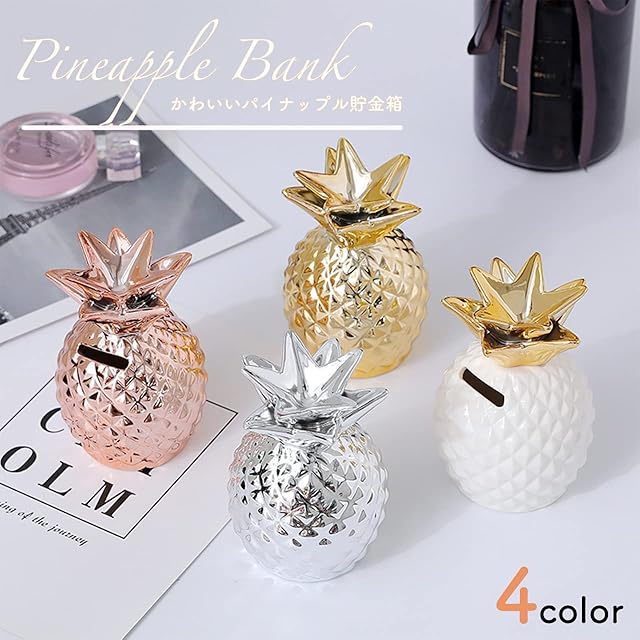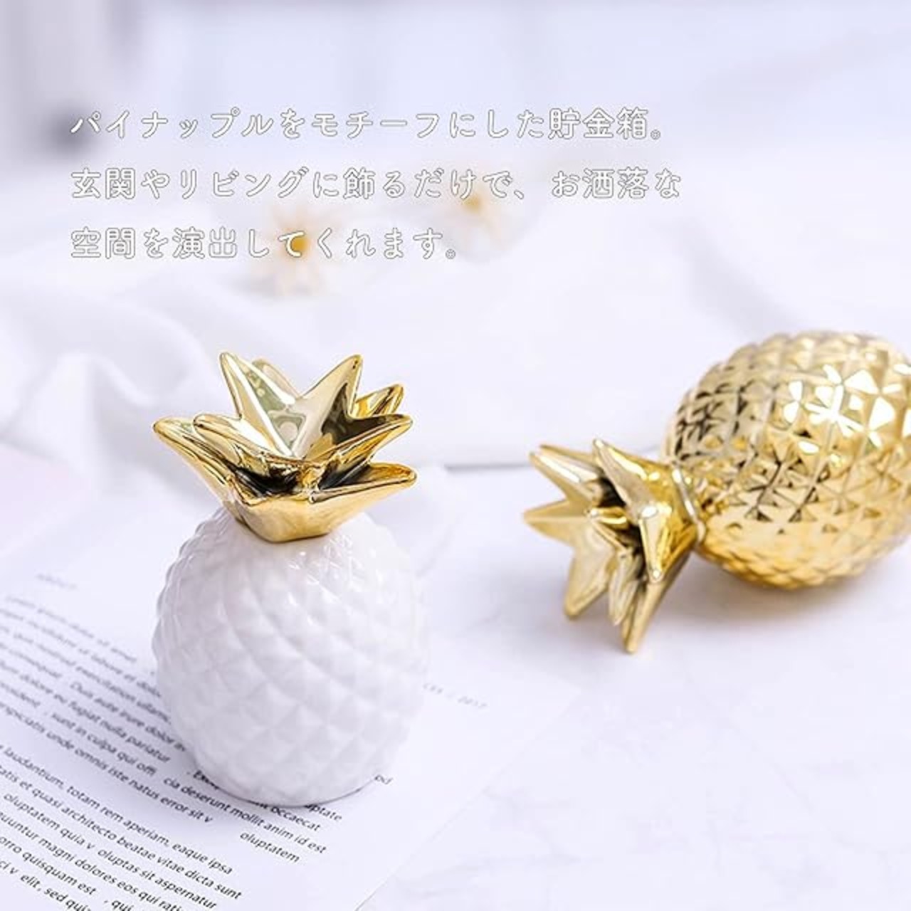 商品名:[Queen-b] パイナップル 貯金箱 かわいい 北欧 セラミック 雑貨 インテリア 置物 室内 デスク 卓上 装飾 オブジェ 果物 フルーツ ギフト 贈り物 プレゼント (ホワイト)