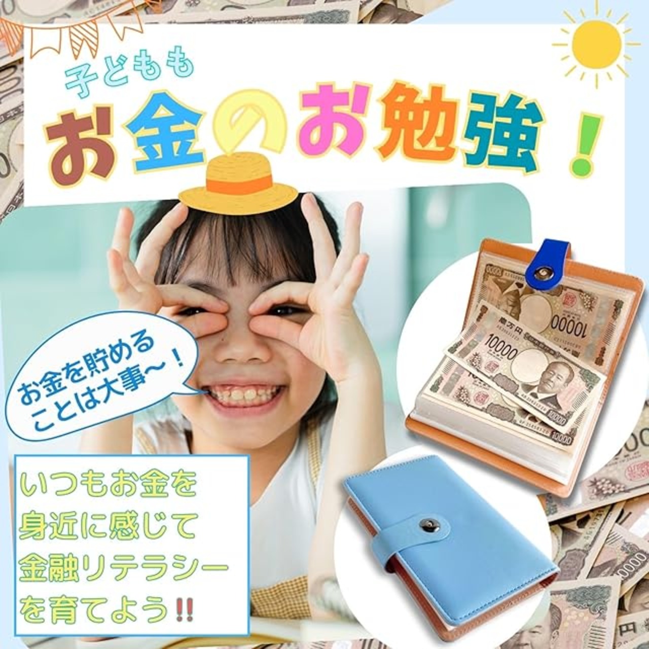 シンプルにお札を収納するためのおしゃれバインダー、クリアシートにお札が溜まっていき、お札貯金が進むにつれてテンションが上がっていきます!お札を1シートに1枚入れてお札が100枚入ります、10,000円札を100枚入れれば100万円貯金!!!