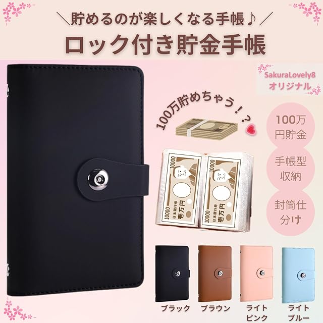 SakuraLovely8 お札貯金箱 100万円貯金 コンパクト 封筒仕分け (ブラック)