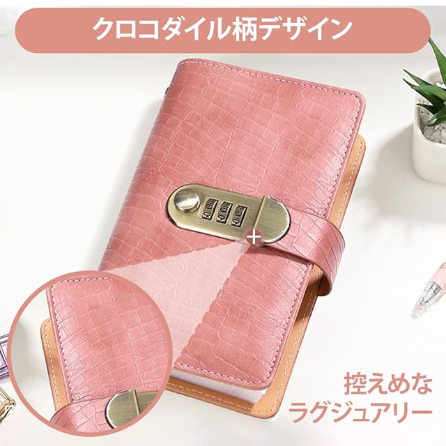 [材質] ワニ革風素材、ダイヤル式ロック付き。精巧な作りが魅力的。書類、請求書、現金など様々な物品を安全に保管可能。夢や目標のための貯金に、特別なルールで楽しみながら続けられる「貯金箱」。