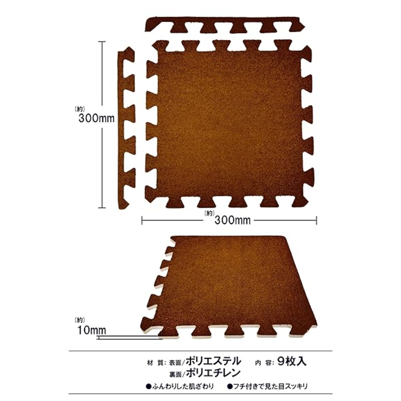 水勘製簾所 起毛 ジョイントマット フチ付き 9枚入り ブラウン