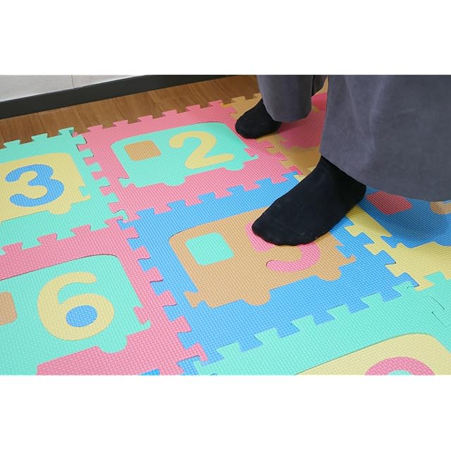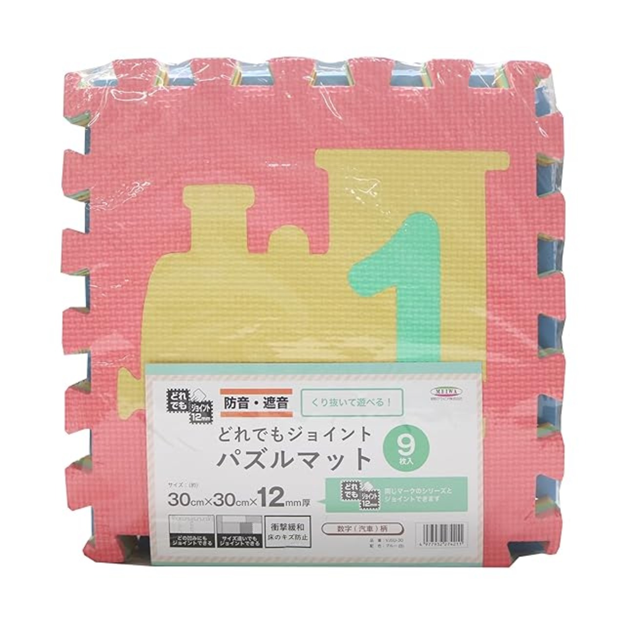 明和グラビア ジョイントマット パズルマット 知育 30cm×30cm×12mm厚×9枚 キッズ 防音 遮音 数字と汽車柄 ブルー VJSU-30