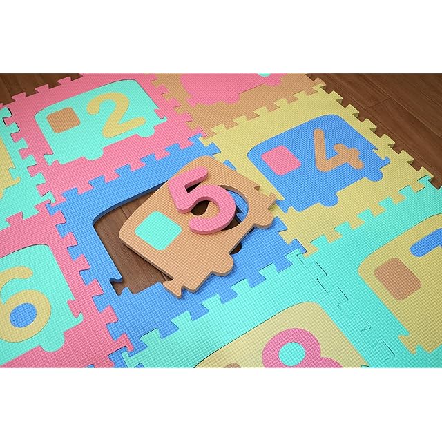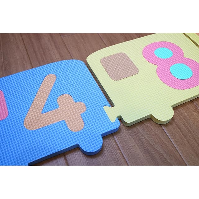 商品名:明和グラビア ジョイントマット パズルマット 知育 30cm×30cm×12mm厚×9枚 キッズ 防音 遮音 数字と汽車柄 ブルー VJSU-30