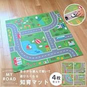 商品名:オカ(OKA) 自分から進んで敷いて遊びたくなる ジョイントプレイマット マイロード 約45cm×45cm 4枚入り(知育 タイル クッション 道路 )