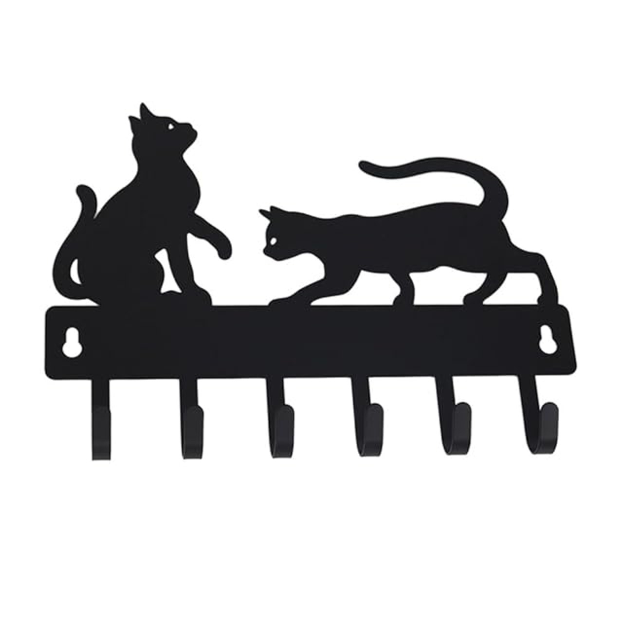 A-ITEM × neko design ウォールハンガー 二匹の猫 6連フック 壁掛け収納 キーフック (ブラック)