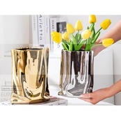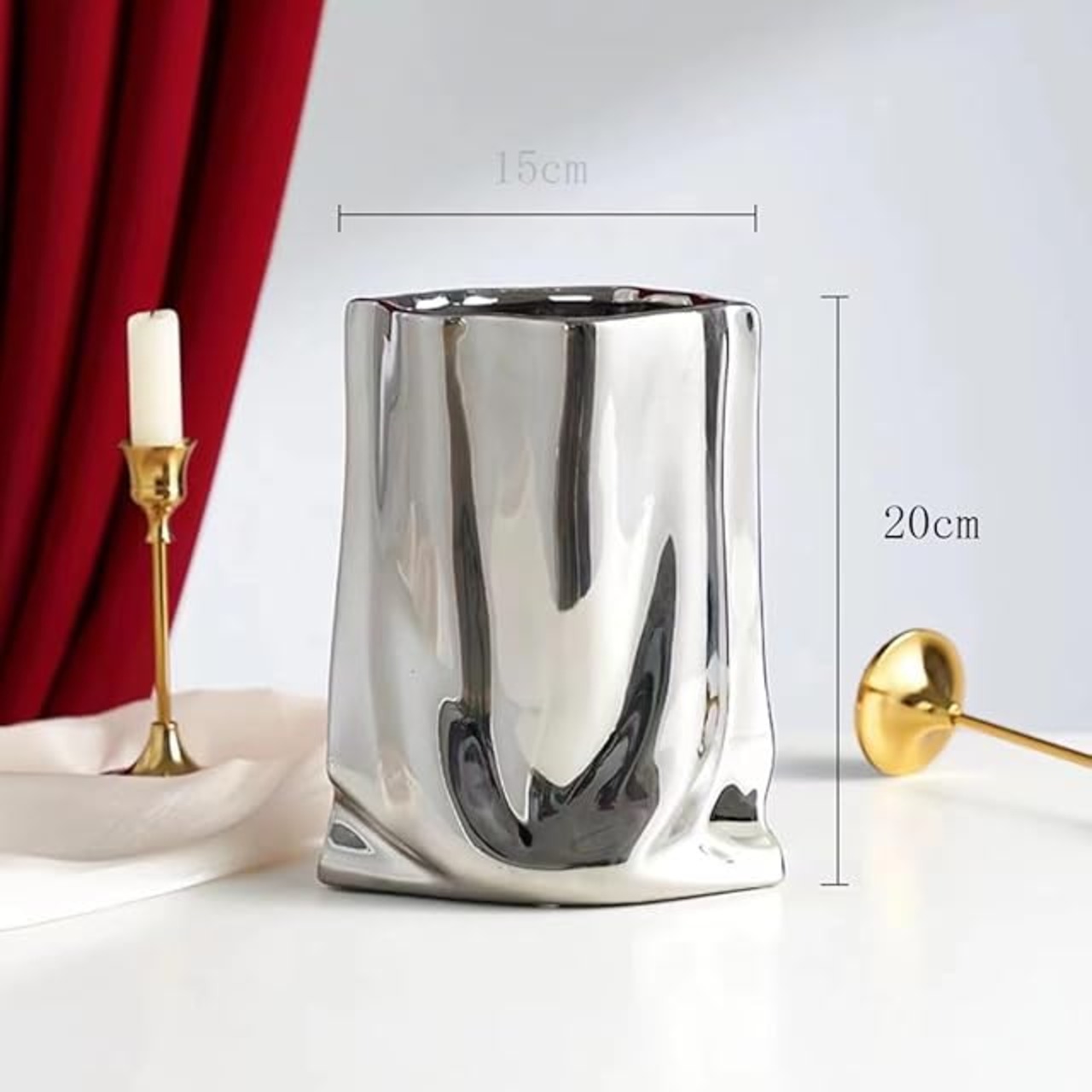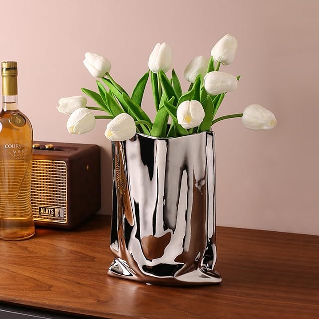 このセラミック花瓶のユニークなデザインは、しわになった紙袋のダイナミックな美しさを維持するだけでなく、セラミック花瓶の繊細でモダンな美しさを取り入れ、見るのに飽きません。