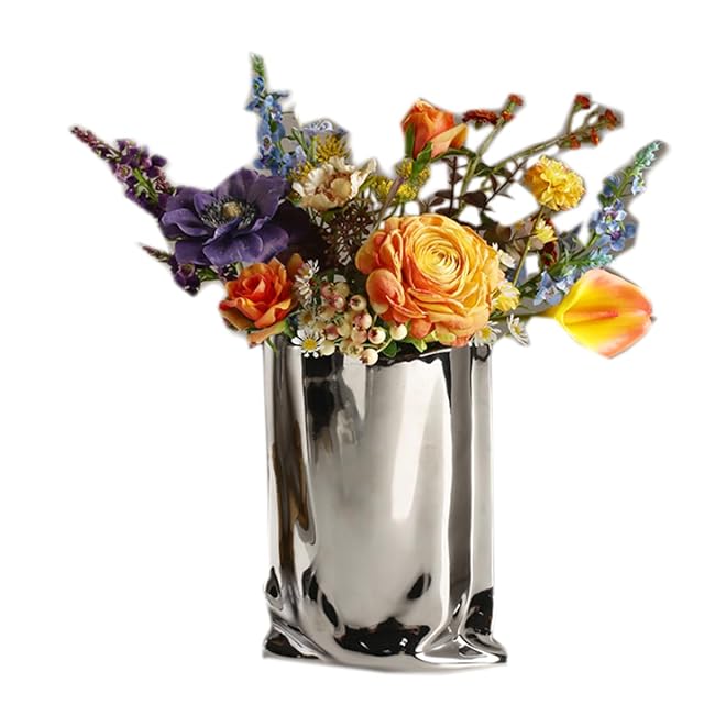 花瓶 陶器 フラワーベース おしゃれ セラミック- モダン 花瓶 装飾花瓶 陶器北欧 花器 銀メッキインテリア飾り 造花 水栽培 装飾花瓶 手芸 工芸品 家庭用リビングルーム装飾品 プレゼント ギフト (バッグ形-銀)