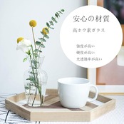 クリアなガラスをカット風にデザインしたシンプルでおしゃれなフラワーベースです。透明なのでどのようなお花を生けても美しく映え、あなたのお部屋や食卓、窓際などに飾れば空間を華やかに演出してくれます