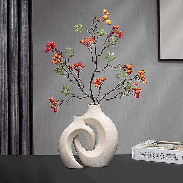 モダン セラミッ花瓶 大きい割れない 2点セット、オフホワイト中空デザイン花瓶 割れないおしゃれ北欧スタイル インテリア 瓶
