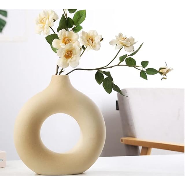 GULAYI花瓶 フラワーベース 花器 陶器 一輪挿し 北欧 おしゃれ 円形 20cm 白い ブラック セラミック ベース 手作り 装飾品 インテリア 家の装飾 結婚式 ギフト キッチン リビングルーム (中-高さ:19.3cm, べーじゅ)