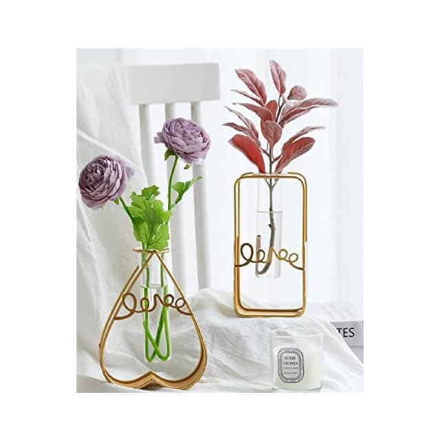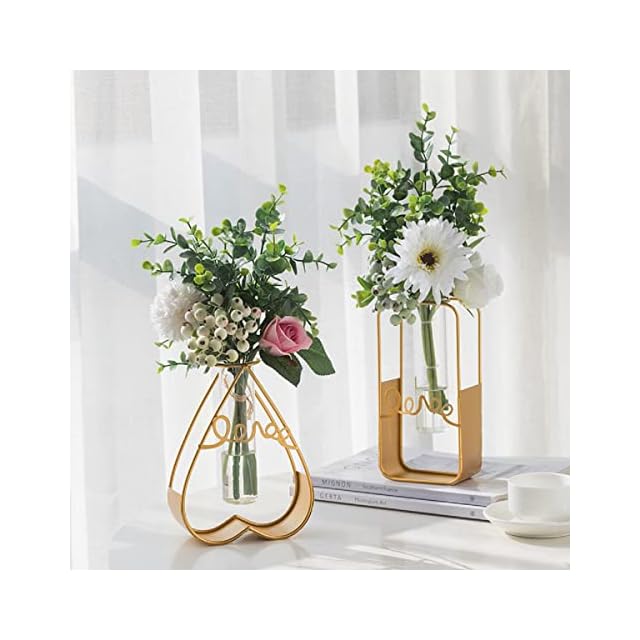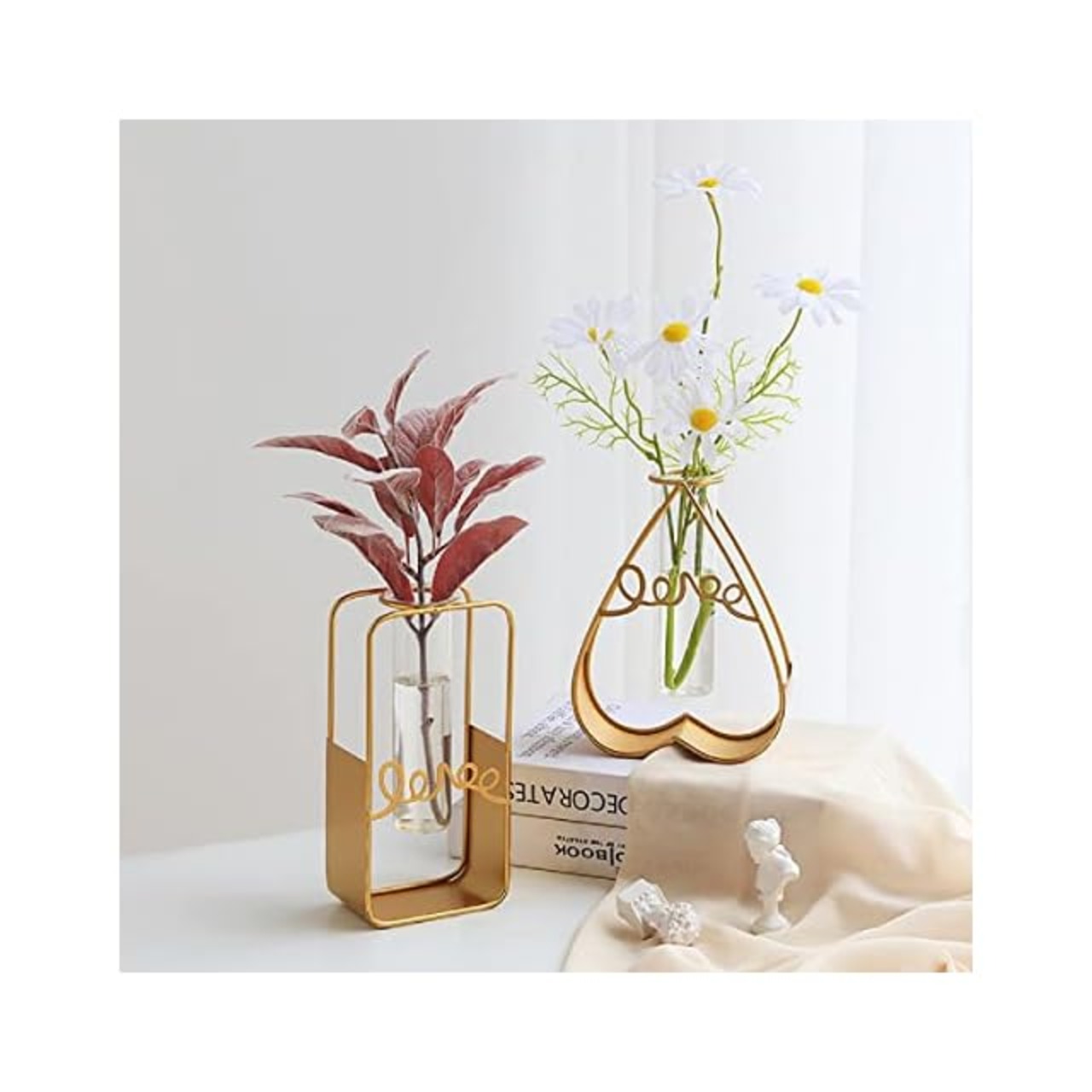 GULAYIガラス 花瓶 フラワーベース 一輪挿し 北欧 おしゃれ 水栽培 試験管 大きい 2つのセット 花器 花びんインテリア 部屋 玄関 リビング プレゼント 贈り物 (セット2:(ハート形+方形 ))
