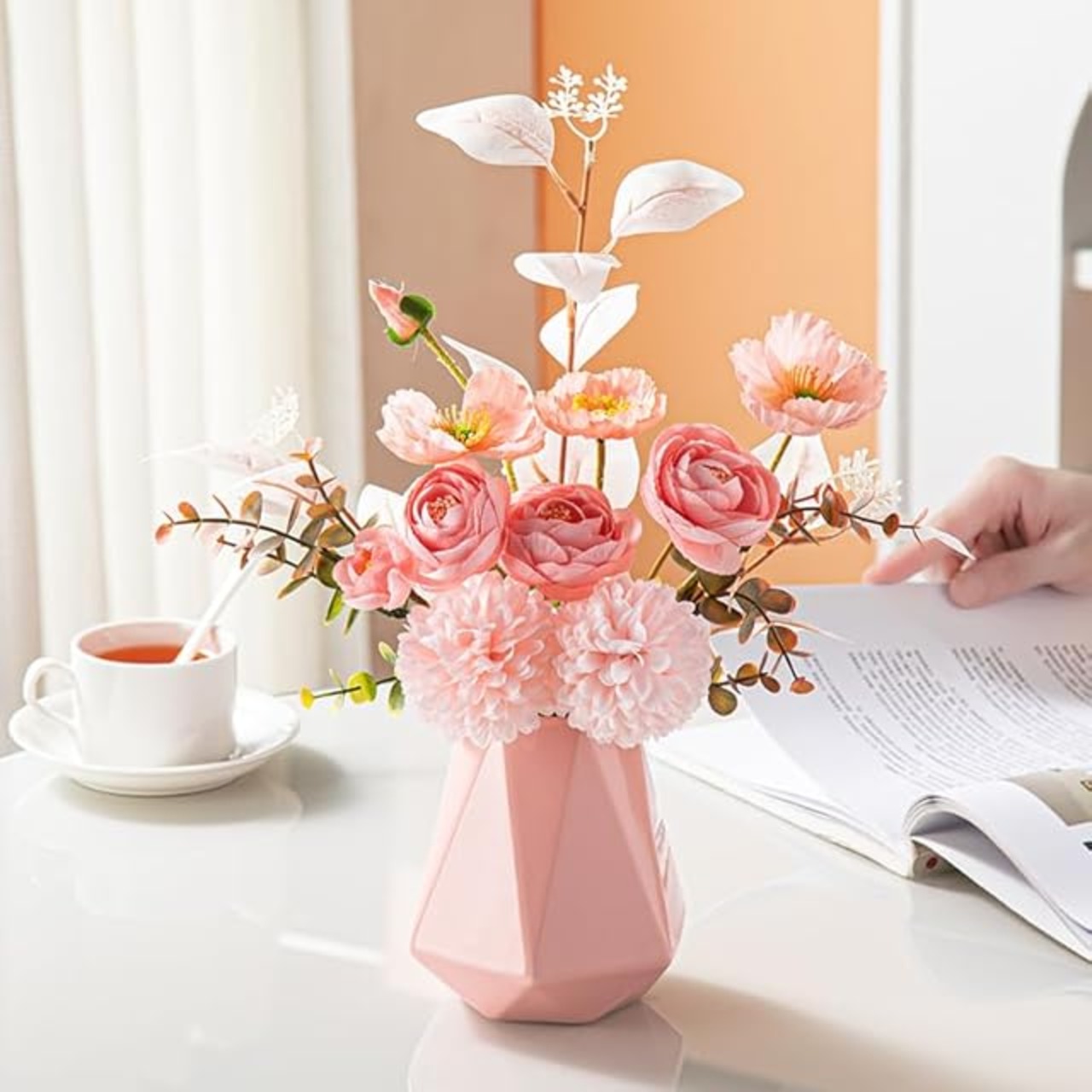 花瓶 フラワーベース 陶器 北欧 おしゃれ 大きいピンク インテリア 花器 生花 ドライフラワー セラミックス 花瓶おしゃれ花びん陶器花入花びんとうきカビんKuFuccj 13.5CM1個入りシンプルかびんセラミック花器 (ピンク)