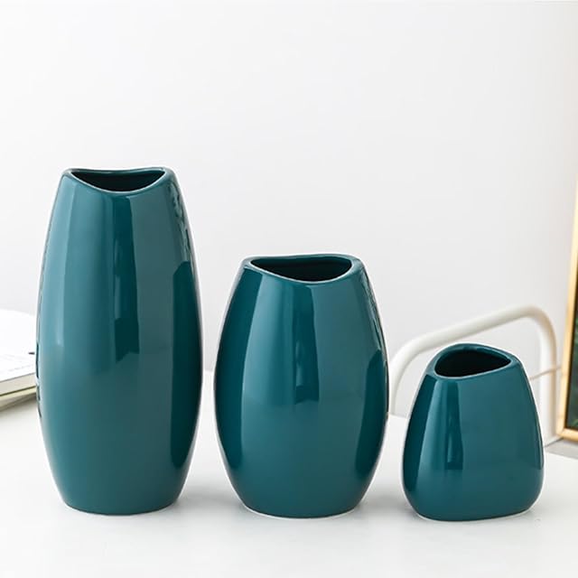 3点セットの陶器の花瓶、内と外はすべて釉薬でコーティングして、型破りな形のデザインは家で飾るのに適して、贈り物になります。 (Green)