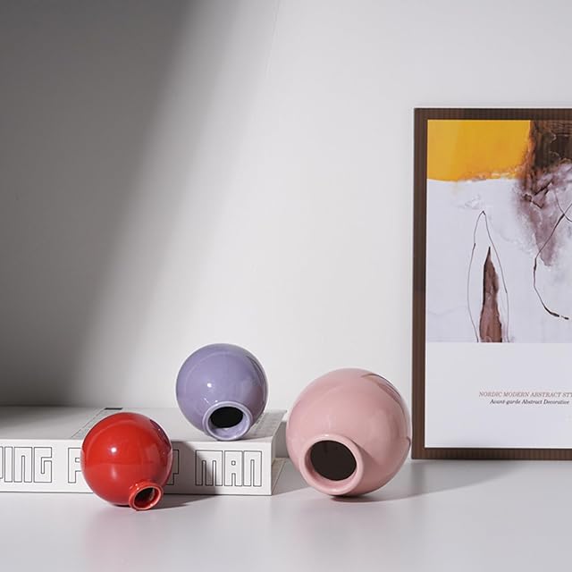 花瓶 陶器 花びん 一輪挿し セラミック フラワーベース 和風 北欧 花器 小 ミニ 小さな花瓶 インテリア飾り 手作り ホワイトセラミックドライ花工芸品 (赤)